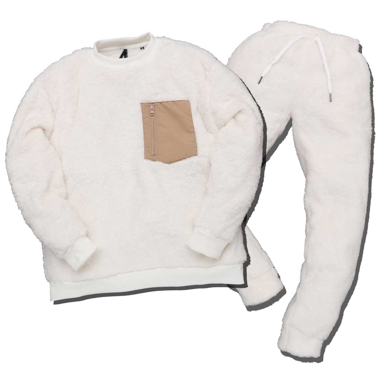 人気のシープボアシリーズから アウトドア感あふれる胸ポケットがオシャレな トレーナー&ジョガーのセットアップが登場! それぞれ単品での着用はモチロンのこと、 上下合わせてのオシャレSETUPとしても オシャレルームウェアとしても大活躍マチガイナシ。